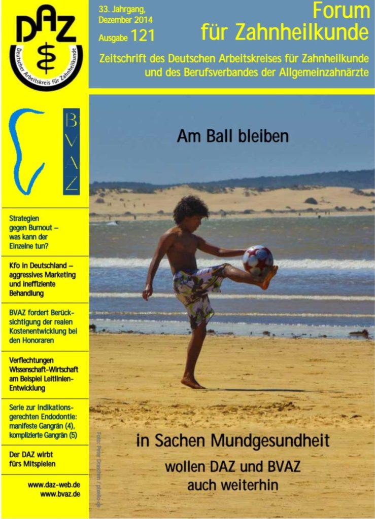 - SelbstverpflichtungDie zahnmedizinische Versorgung der Bevölkerung orientiert sich immer mehr an wirtschaftlichen Interessen der Krankenkassen, der Zahnärzte und der öffentlichen Haushalte statt an der tatsächlichen medizinischen Behandlungsnotwendigkeit. Der Deutsche Arbeitskreis für Zahnheilkunde(DAZ) beobachtet dieses mit großer Sorge. Es wäre Aufgabe der zahnärztlichen Körperschaften, ergebnisorientierte Mindestvorgaben für eine patienten- und indikationsgerechte Therapie vorzugeben und durchzusetzen. Unsere Körperschaften erfüllen diese Aufgabe aber nur unvollkommen und verzichten damit auf eigenverantwortlich gestaltete Handlungsspielräume, die immer mehr ...weiterlesen